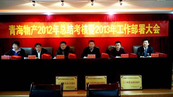 2013年1月25日,集團(tuán)總公司在集團(tuán)一號(hào)會(huì)議室召開"青海物產(chǎn)2012年總結(jié)考核暨2013年工作部署大會(huì)"。集團(tuán)領(lǐng)導(dǎo),集團(tuán)中層干部,受表彰的先進(jìn)個(gè)人、職工代表及退休干部代表參加會(huì)議,省國(guó)資委領(lǐng)導(dǎo)張守杰帶領(lǐng)考核小組蒞臨大會(huì)。