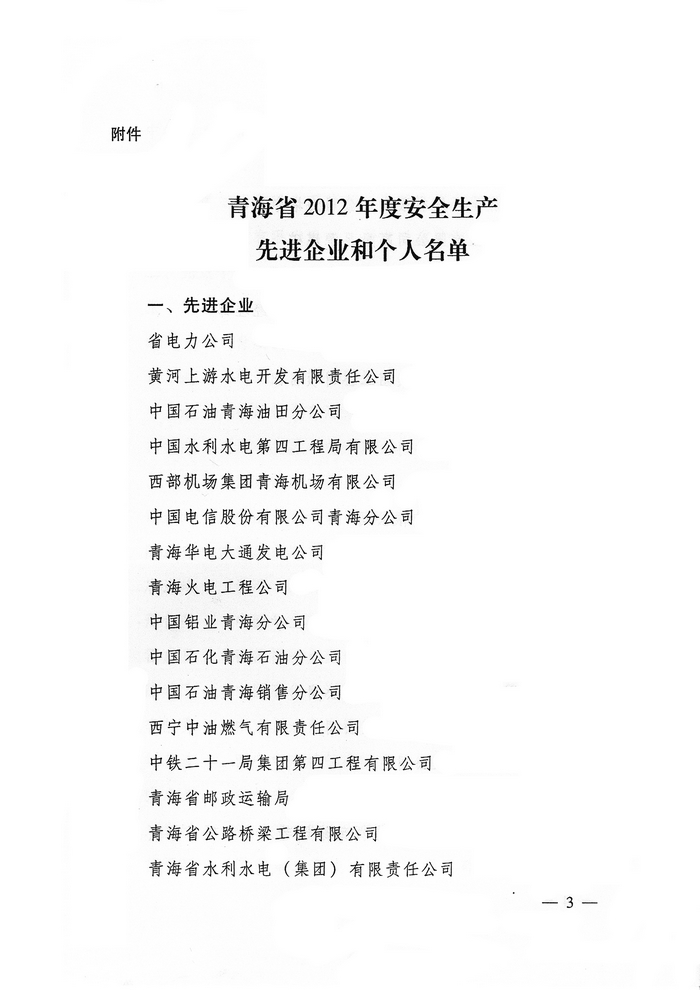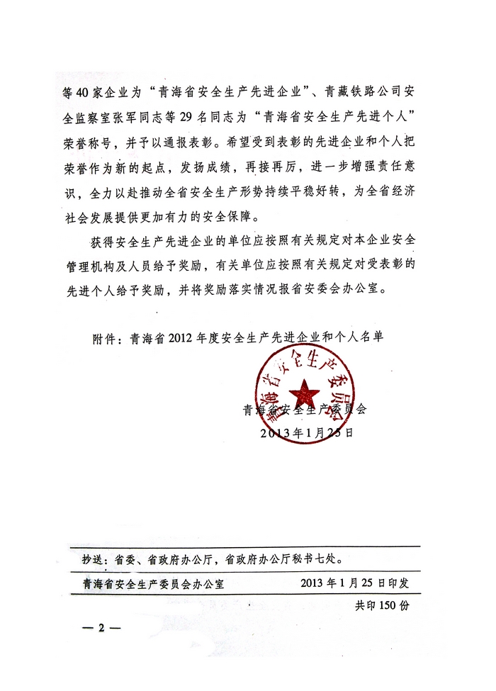 青海物產榮獲“2012年度安全生產先進企業”榮譽稱號